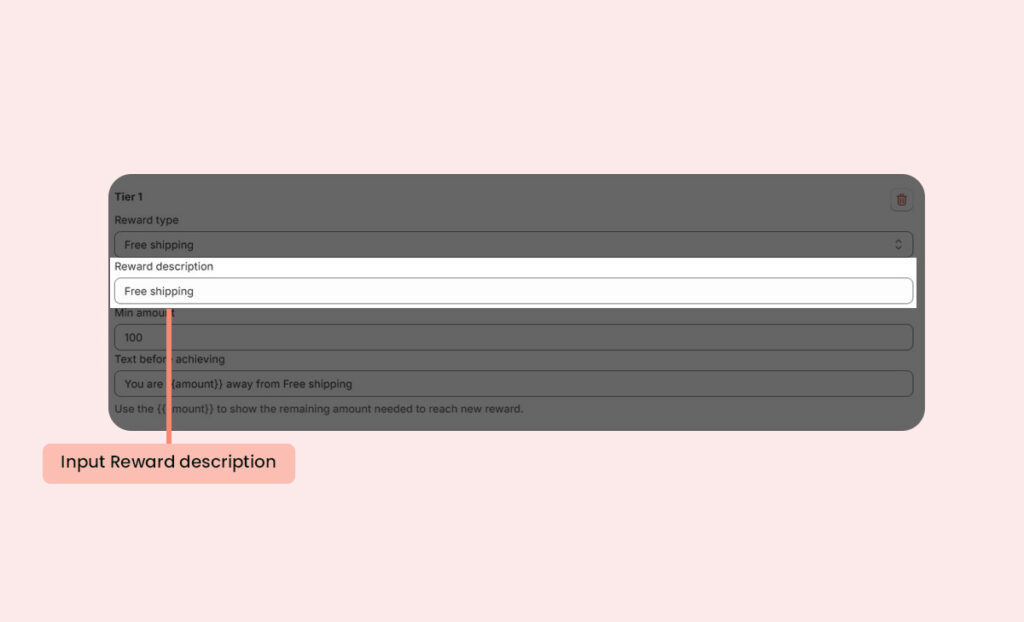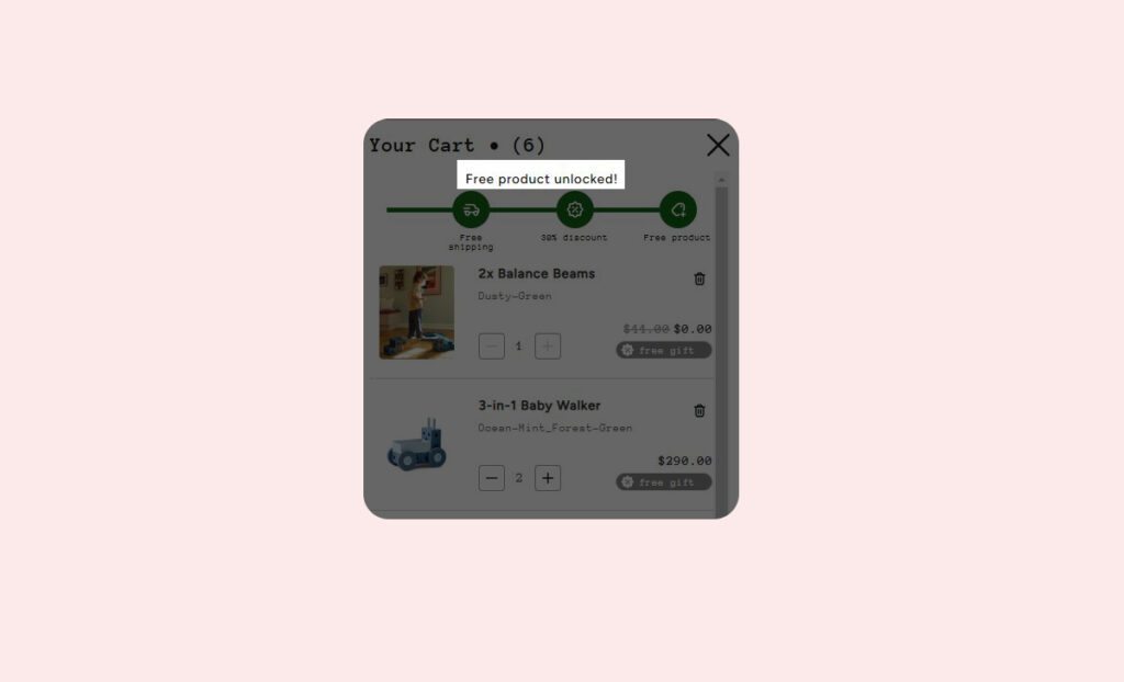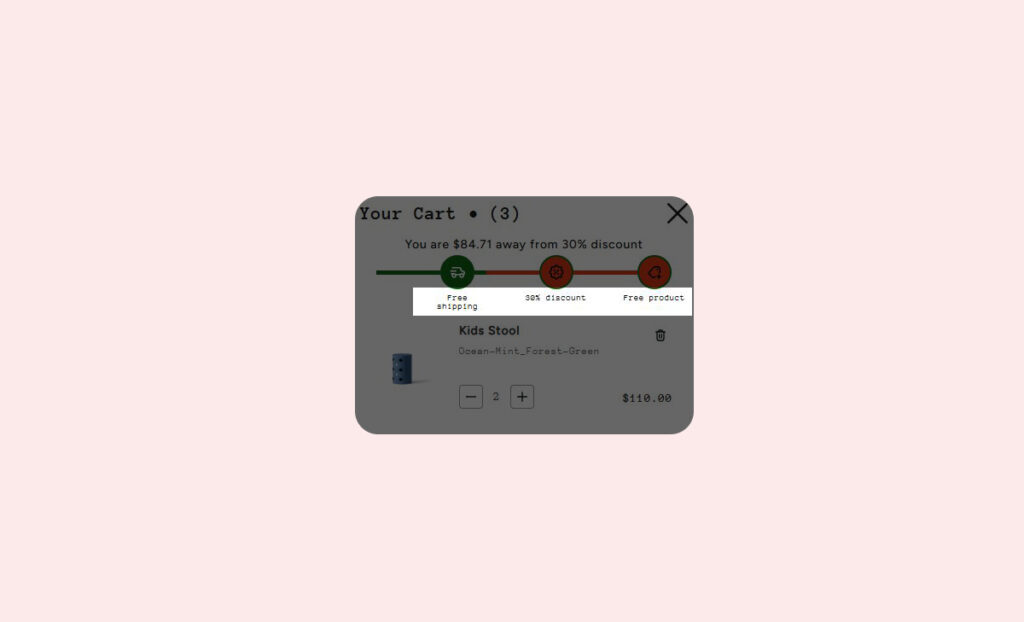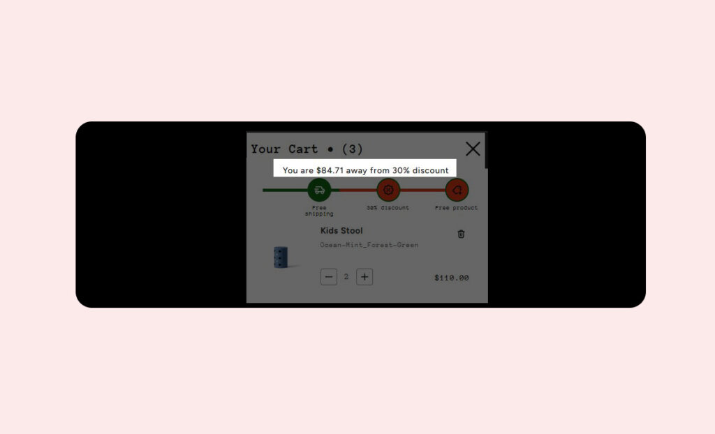 - Text before achieving: The text shows before the value reaches the minimum cart amount or item count.