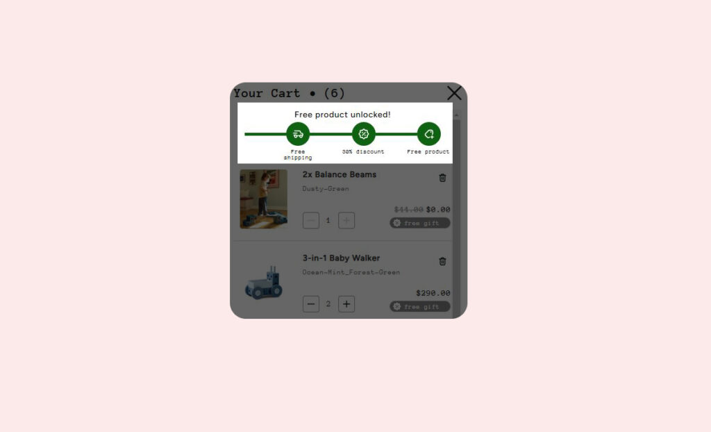 Rewards are a way to encourage customers to increase their purchases. When customers add products to their cart, the rewards bar acts as a progress tracker, showing them how close they are to earning discounts based on the value of their cart. This feature motivates customers to spend more in order to unlock valuable rewards, ultimately boosting sales.