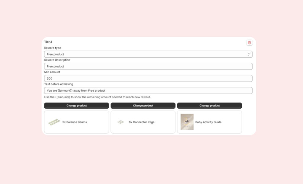 Note: If you want to use Free product tier, please prepare manually free products you want and add the products when configuring the reward. We will automatically add the products to the cart if the condition is met. However, if the product has a price, it will still be applied to the cart.