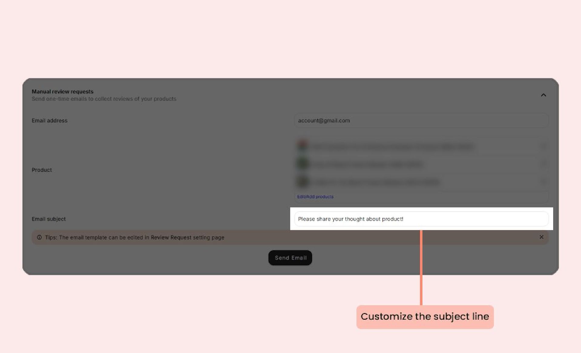 5. Customize the subject line for your review request emai