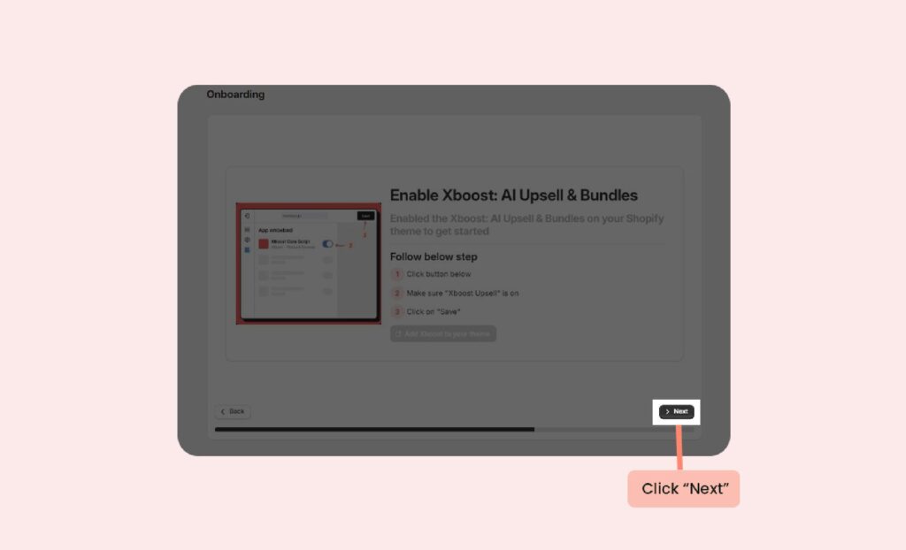 After complete Activate Xboost core script, now you can back to Onboarding screen and click Next to proceed.