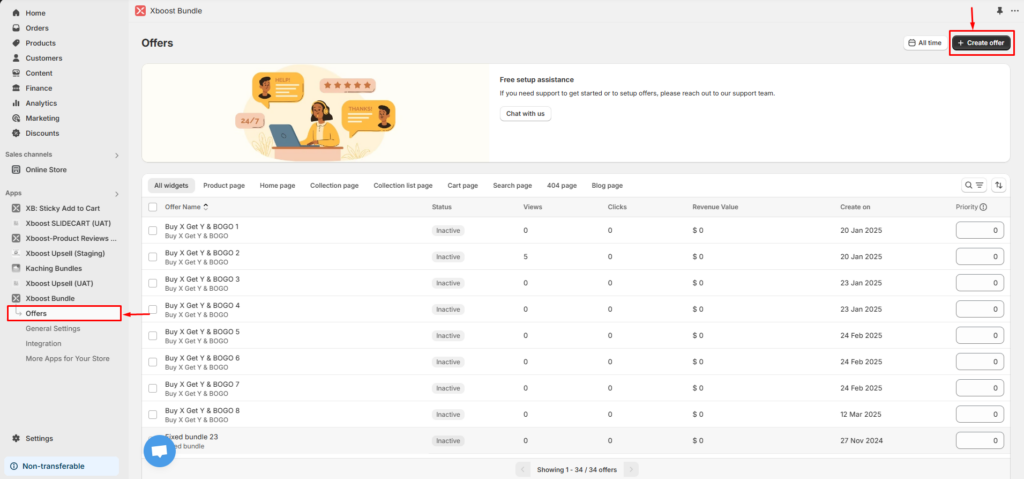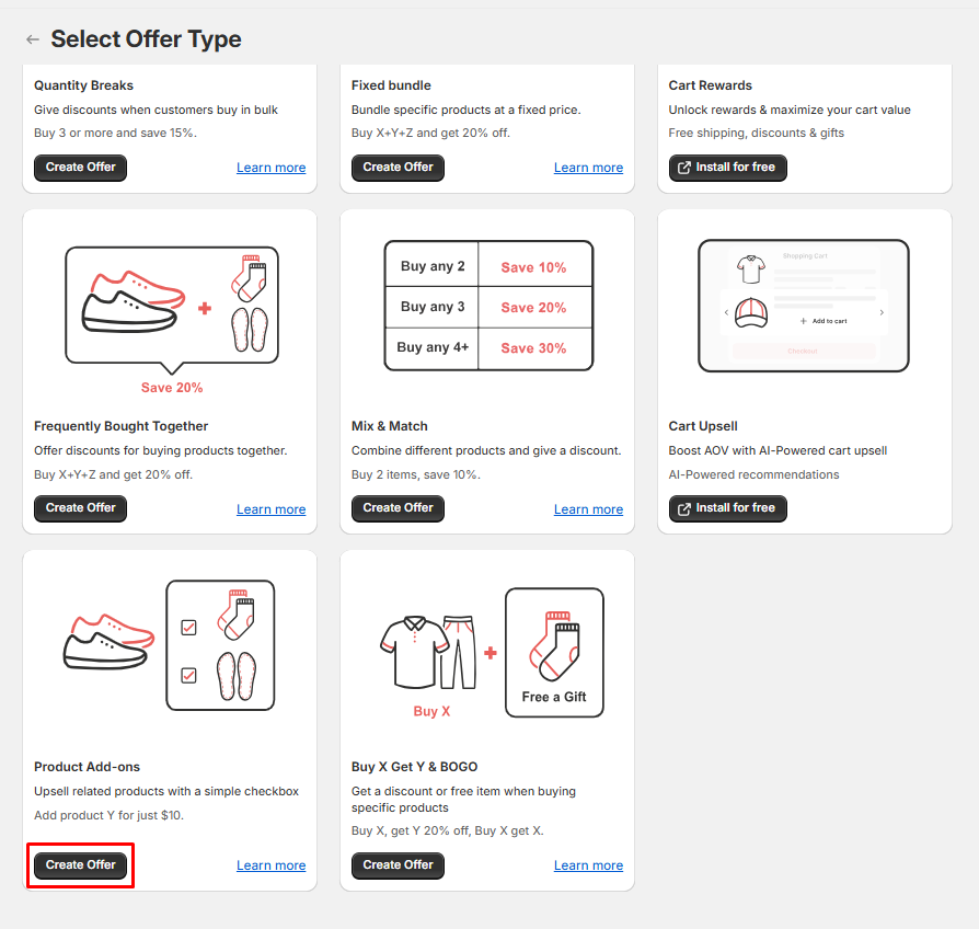 - Click Create offer from the Xboost: AI Upsell & Bundles app’s offers page.