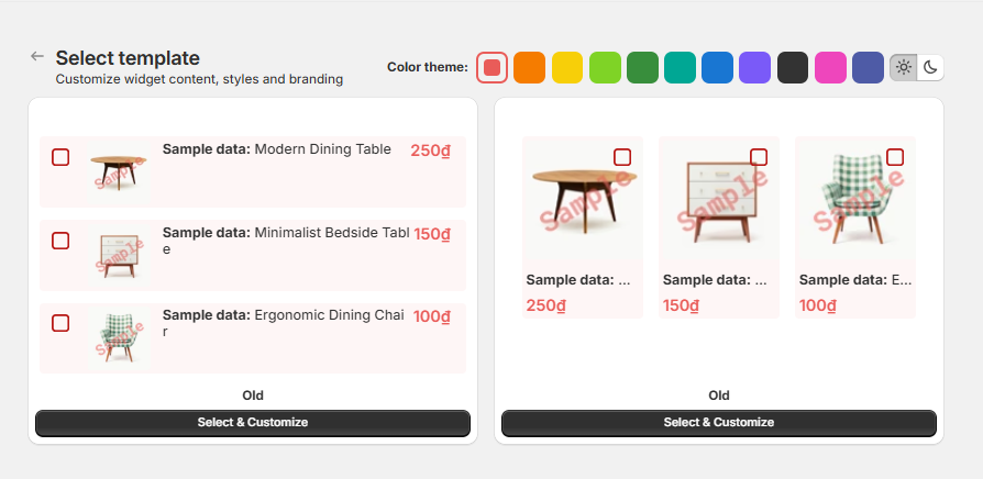 - Auto select offer products allows you configuring auto select offer products on the widget or not.