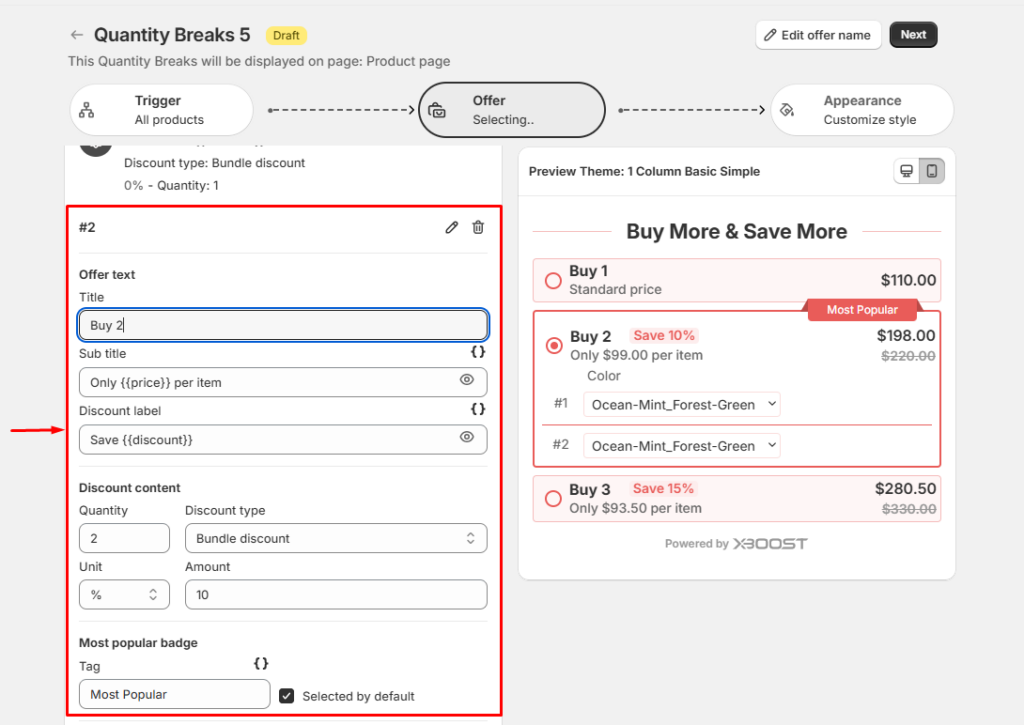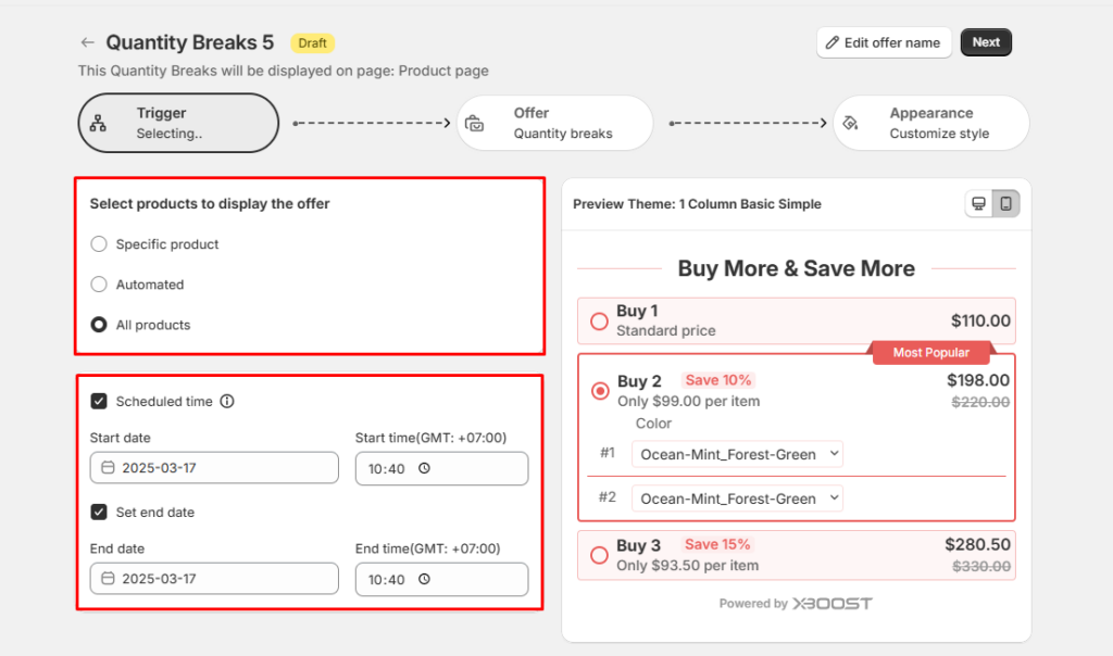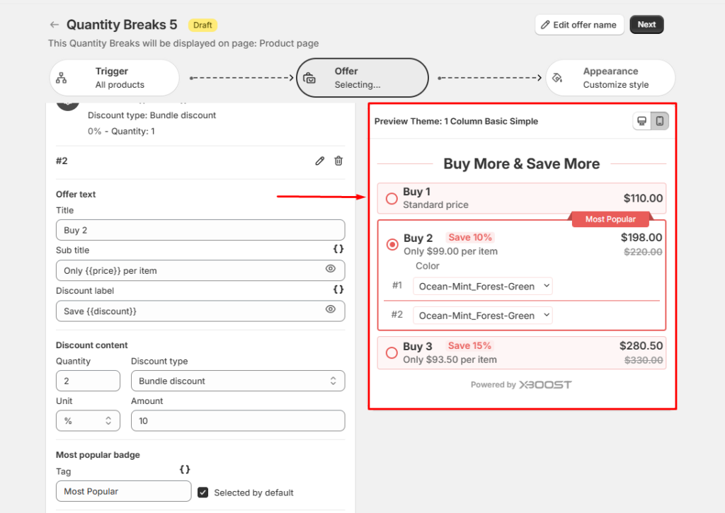 Here’s a detailed guide on how to create a quantity breaks offer using Xboost: AI Upsell & Bundles in Shopify: